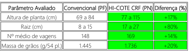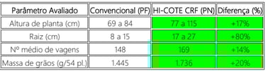 O fertilizante HI-COTE CRF Blend for Soybeans proporcionou um ganho de produtividade de 12,85% em comparação à fertilização padrão utilizada na fazenda.