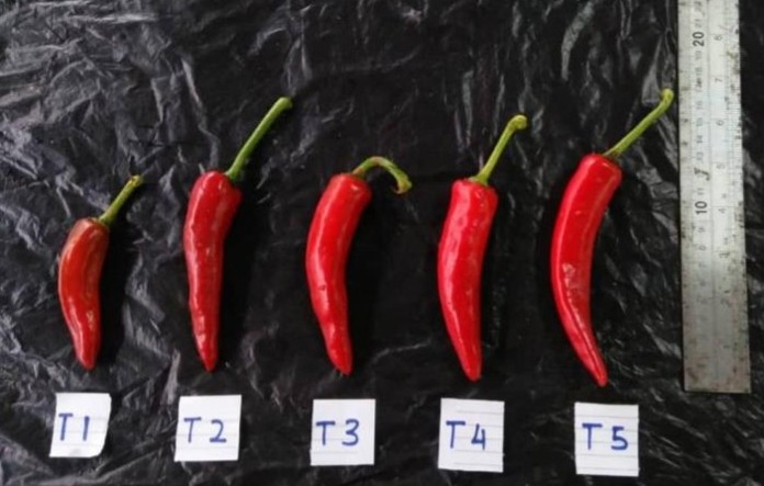 Os resultados mostraram que as plantas de todas as parcelas tratadas com CRF eram significativamente mais altas do que as plantas tratadas com fertilizante convencional. Além disso, as plantas mais altas foram produzidas em parcelas tratadas com 5g/planta de CRF e eram mais altas do que todos os outros tratamentos em ambos os locais. Os valores de SPAD obtidos no experimento de Serdang mostraram que as plantas tratadas com CRF produziram valores de SPAD maiores do que as das parcelas tratadas com fertilizante convencional. A análise do rendimento da pimenta revelou que os tratamentos com CRF de 4g/planta e 5g/planta tiveram uma vantagem de rendimento de 11,1% e 15,5%, respectivamente, sobre as parcelas tratadas com fertilizante convencional em Serdang.